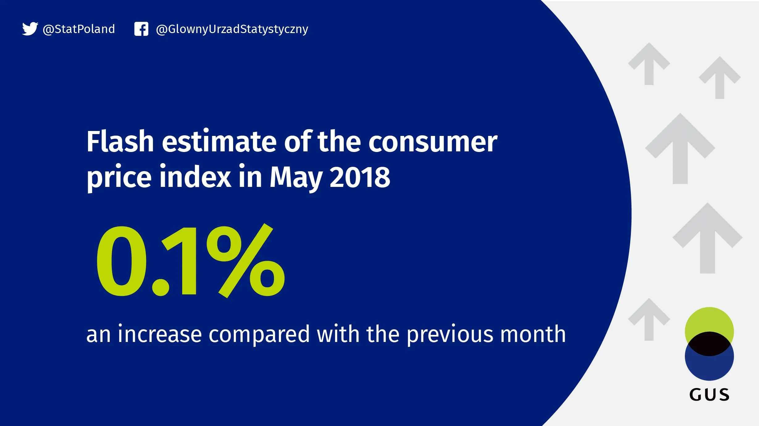 Consumer prices according to the flash estimate in May 2018, compared with the previous month, increased by 0,1% (price index 100,1), and compared with the corresponding month of the previous year increased by 1,7% (price index 101,7).